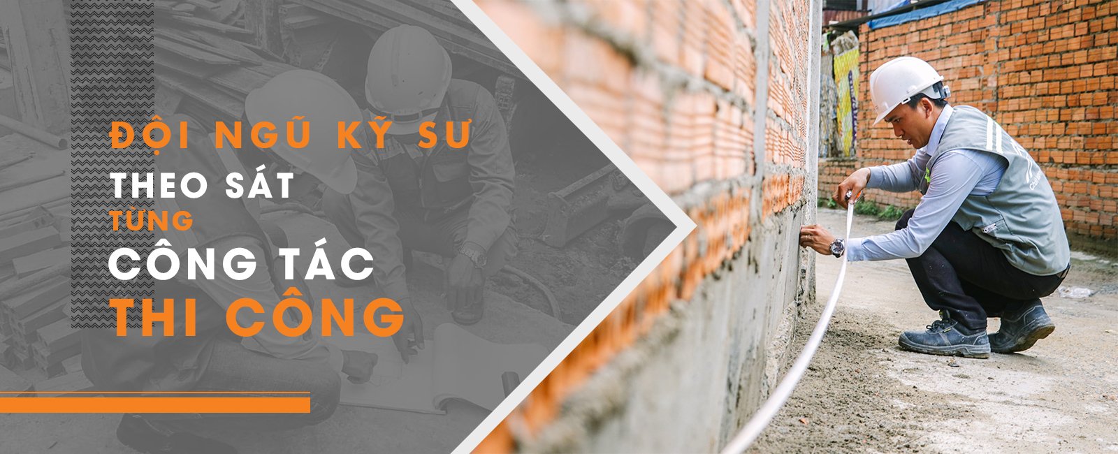 Đội ngũ kỹ sư thường xuyên kiểm tra, giám sát quá trình cung ứng vật liệu và nhân sự thi công. Đảm bảo chất lượng và tiến độ thi công như đã cam kết
